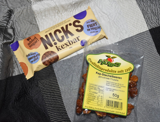 V štvrtej krabičke boli dva produkty. Jedným z nich bol čokoládový keks, ktorý je bez cukru a len s tmavou čokoládou. Chutil dobre, až ma to prekvapilo. Priateľovi chutil taktiež. Asi sa pozrieme, kde sa dá kúpiť. Druhým produktom bolo sušené ovocie, konkrétne machovky a egreše. Tie sme ešte neskúšali, ale rozmýšľala som, že by som napiekla zdravé koláčiky a dala to do nich.