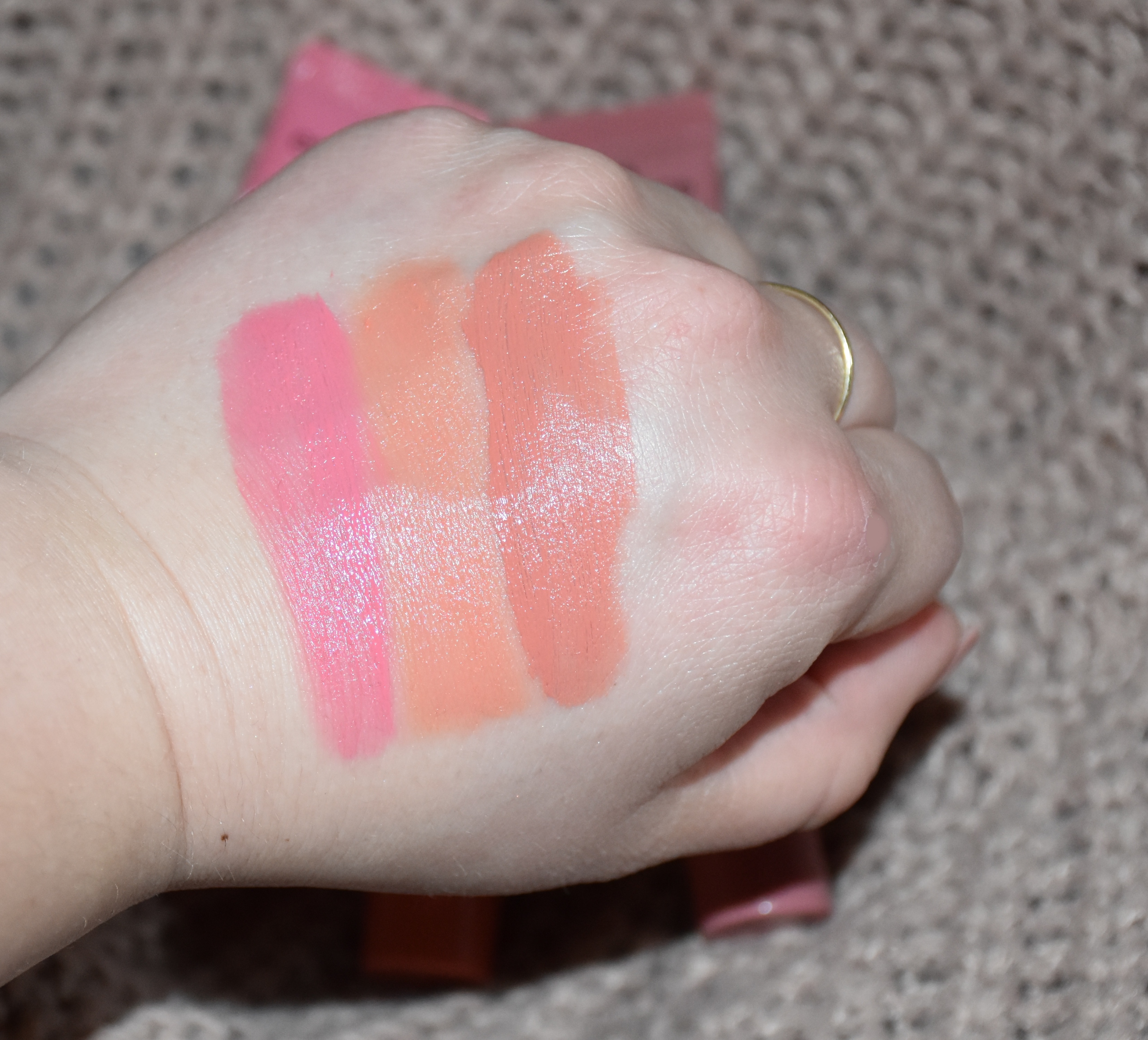 Tieto tekuté lícenky sú dostupné v 4 odtieňoch. Ja mám doma tri - vľavo je odtieň 10 pinkalicious, v strede 40 coral crush a tá tretia je v odtieni 30 dusty rose. Chýba mi len odtieň 20 blushin berry, na ktorý keď natrafím, tak si ho taktiež vezmem. Najviac som si obľúbila odtieň dusty rose, ktorý vám môžem odporúčať a myslím si, že je to univerzálny odtieň, ktorý sadne väčšine.